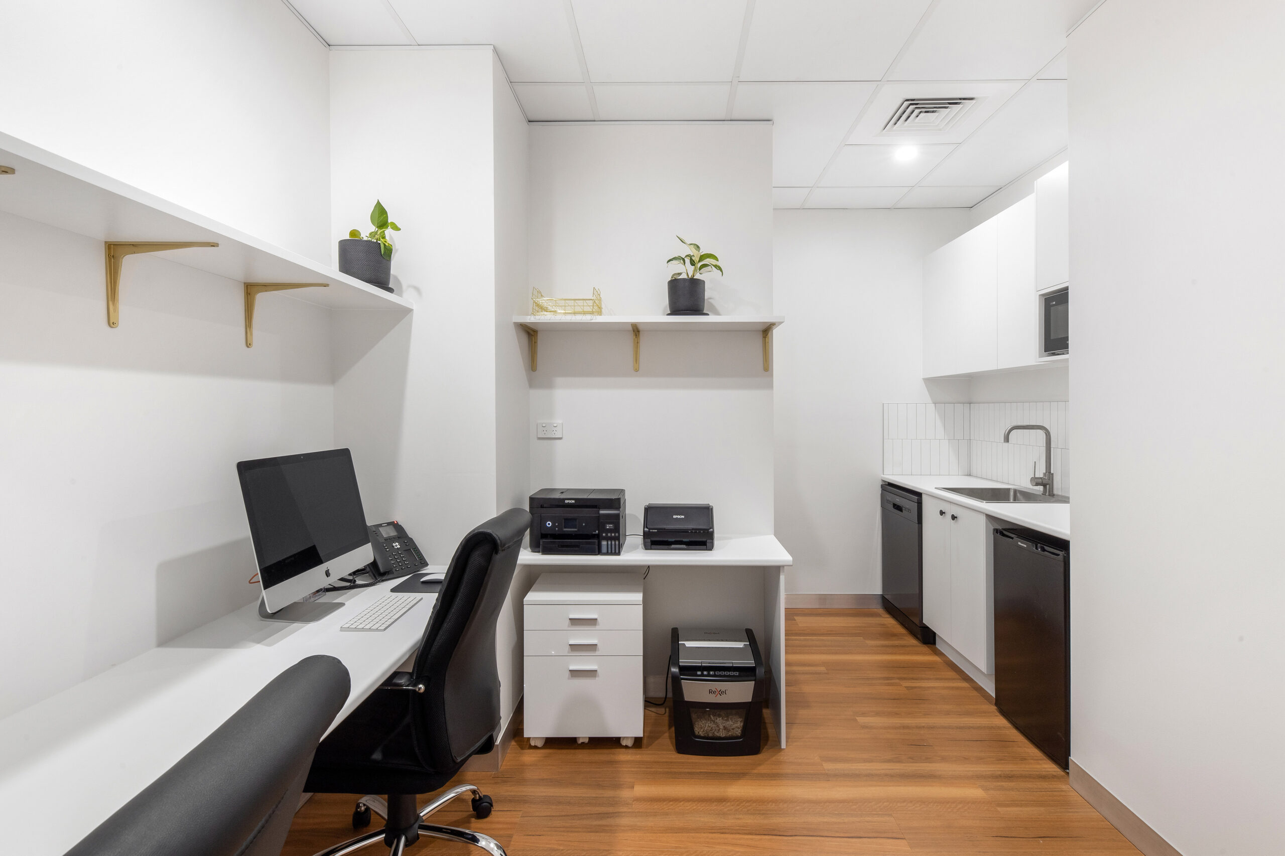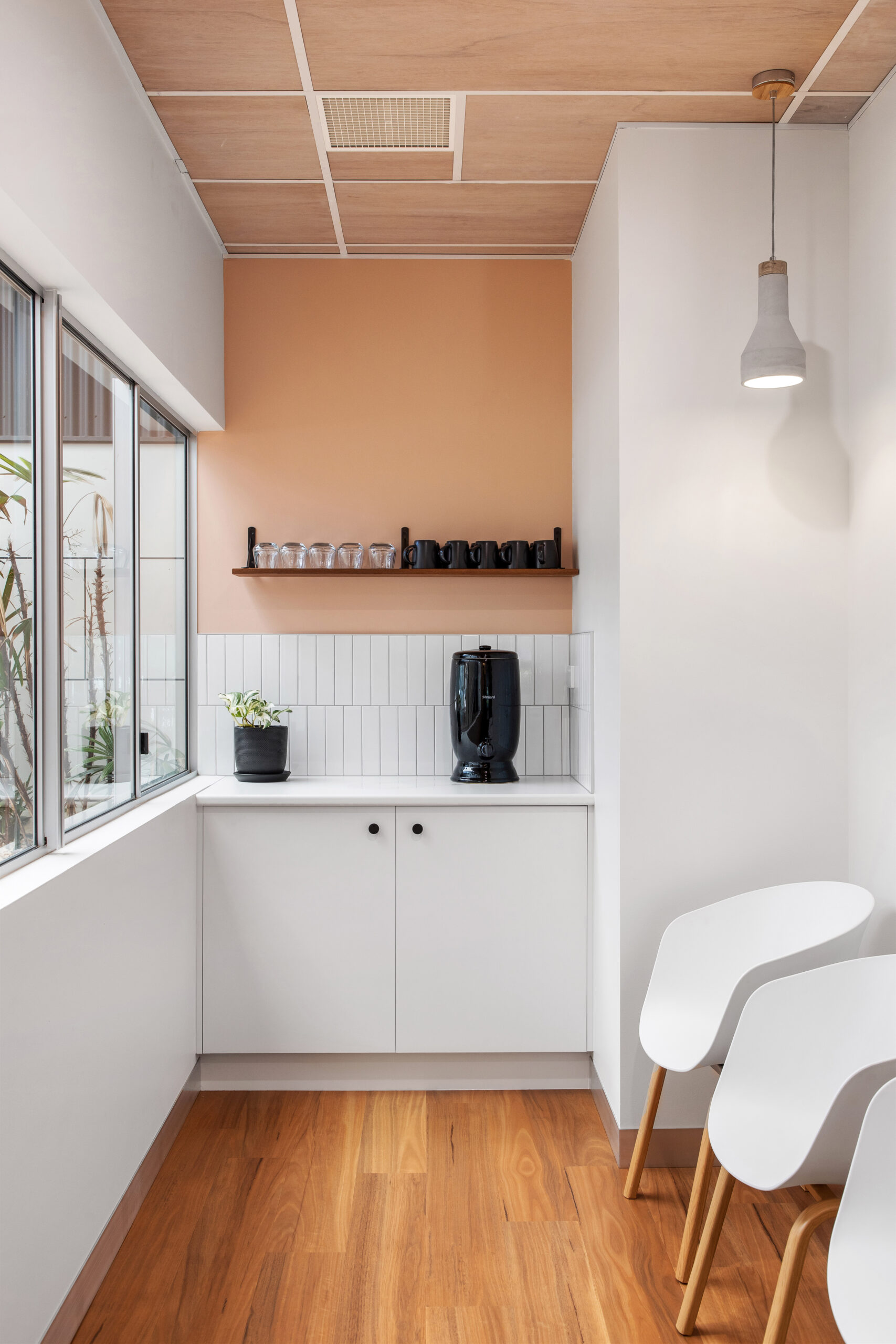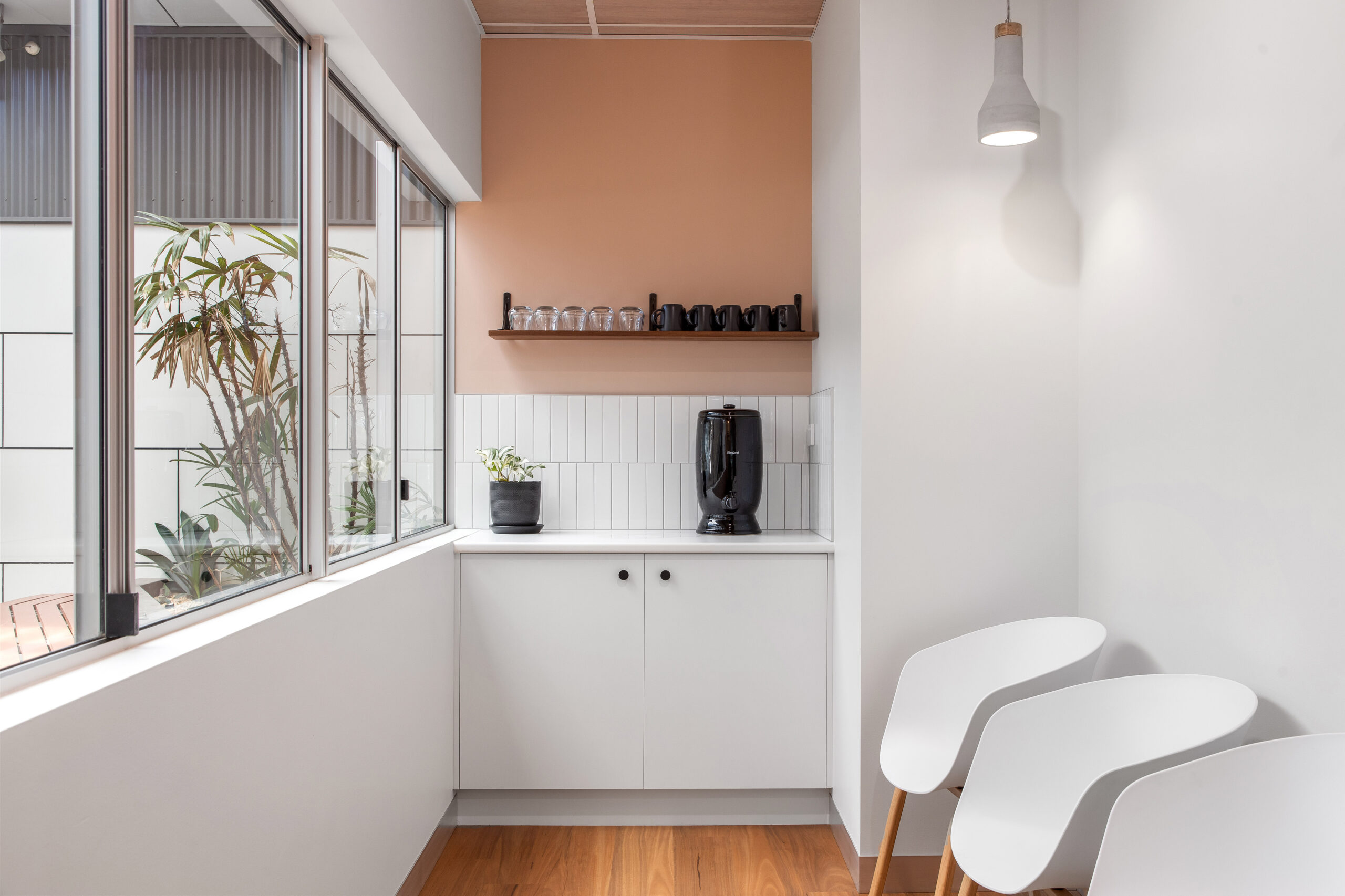 A simple yet beautiful office fit out for Beach Property Group in Bokarina. This modern coastal office was designed by Kitchen Design Co. and features a reception, open office, meeting room and a functional kitchenette.