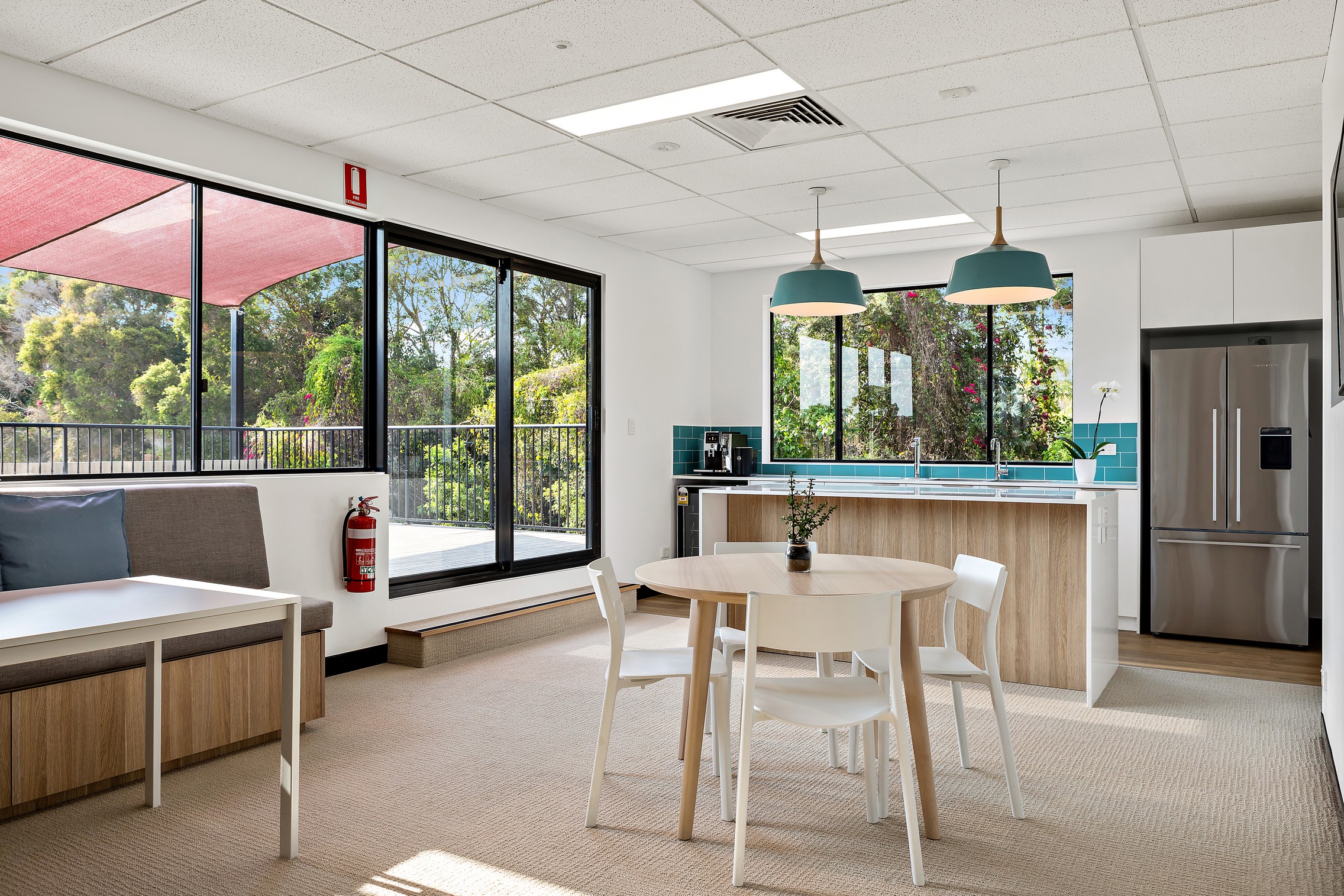 A simple yet beautiful office fit out for Beach Property Group in Bokarina. This modern coastal office was designed by Kitchen Design Co. and features a reception, open office, meeting room and a functional kitchenette.