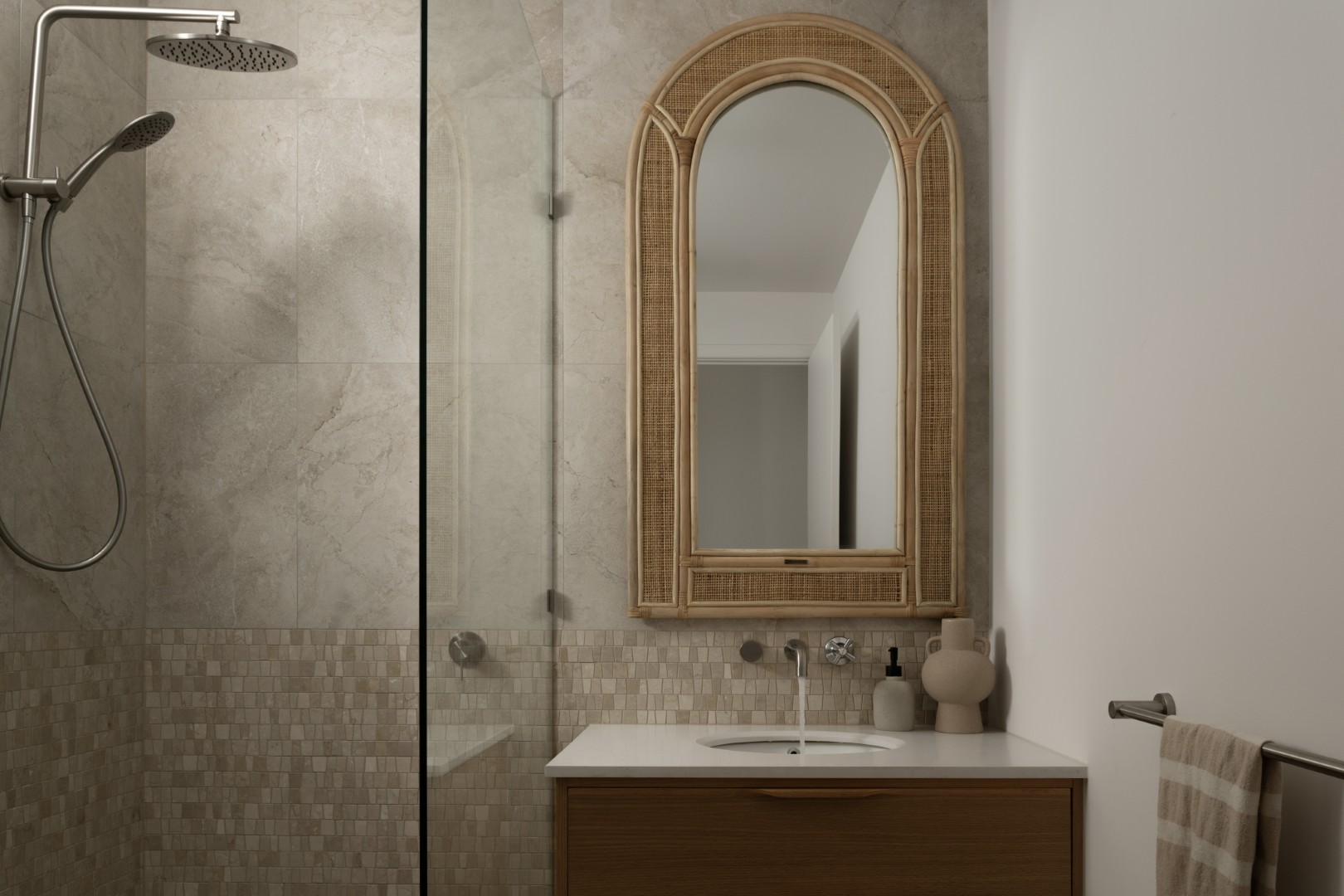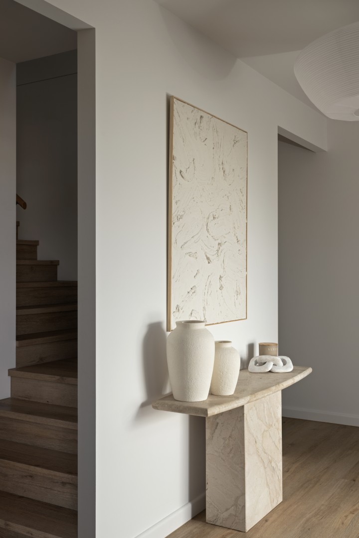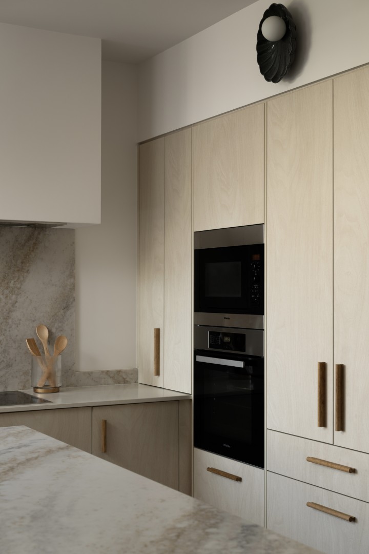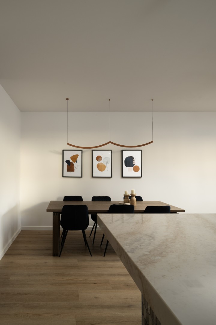 A vibrant rising sun across the awing welcomes guests inside, where a mandarin-toned tiled counter and golden glowing ‘sun’ light feature take centre stage – Hais Design.